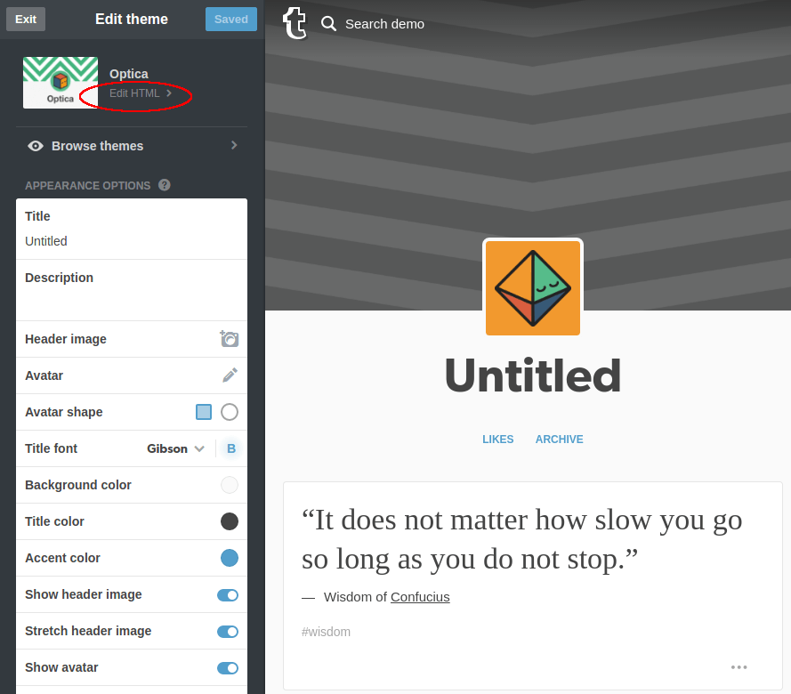 Go to Edit HTML link.