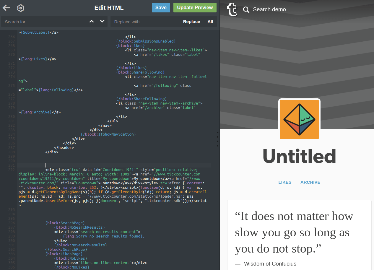 - Copy your embed code provided by TickCounter. If you don't have a counter yet, go and make one.